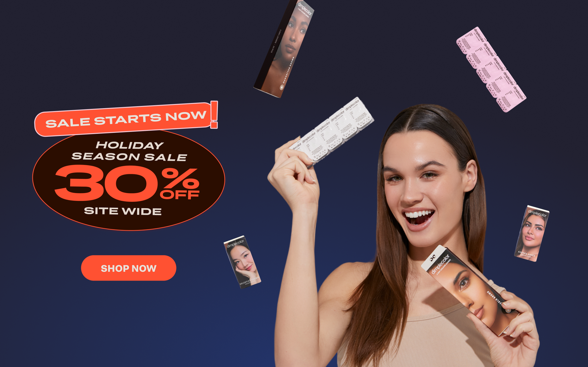 Lenses that look super natural, not supernatural. That's the Dimple Color way. And right now? The Holiday Season Sale is on, 30% off sitewide and more surprises still to come.