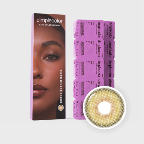 Our Burnt Butter Hazel three-tone lenses are designed to give your eyes a soft, natural hazel glow with rich amber touches. The combination of these colors creates a very natural-looking result that is perfect for enhancing your natural eye color.